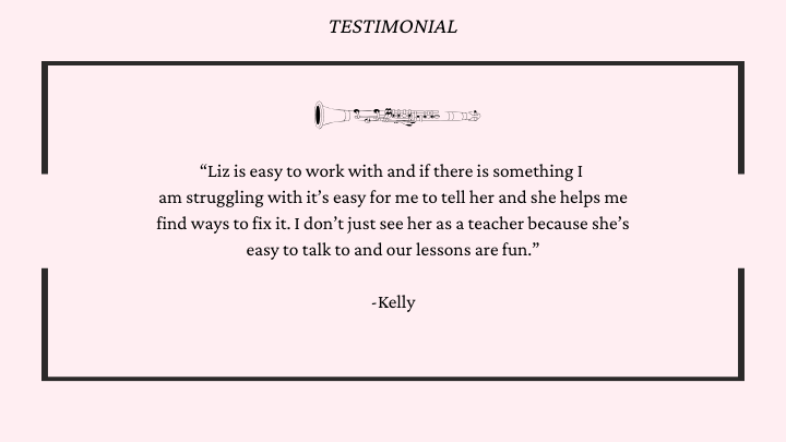 ”Online clarinet lessons that are warm, build confidence, & are beginner friendly!”