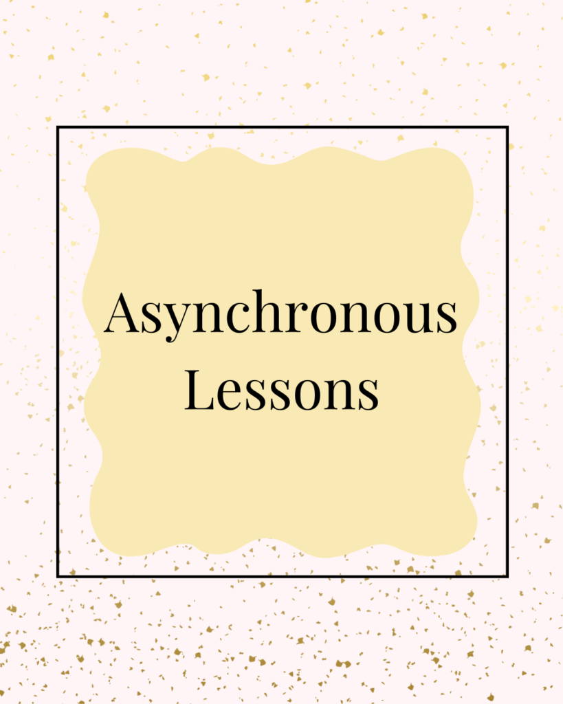 The Asynchronous Lessons package is a 1-1 private lesson package that signs you up for 1 month of weekly lessons that are all done through sending recorded videos back and forth! Great for students who still want to get feedback from a teacher, but can’t commit to live lessons. Or perfect for students who want extra attention throughout the week before their next live lesson.